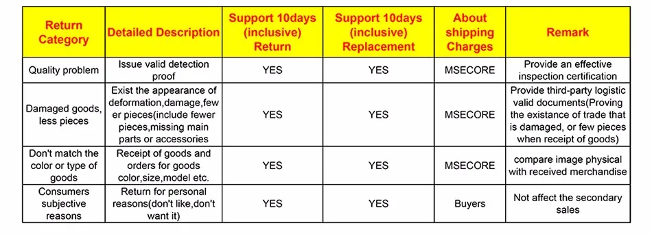We provide the 3-years product warranty, service is completely reliable and professional technical team. Class product quality, regardless of the current line, the product line marketed under the failure rate is very low, less than one percent failure rates. In case you encounter repair, you can contact us, send the product back to the company or our physical store. 3 years later, we still provide service for all users, and fees charged parts, maintenance free for life. MSECORE committed to the sale of goods in line with the requirements of the case to return from the date of sale 10 days can return exchange within 30 days
