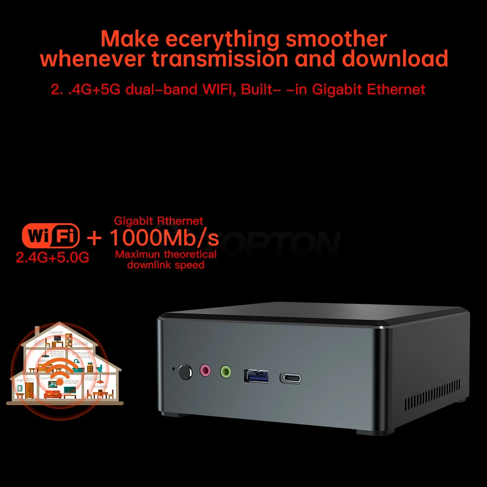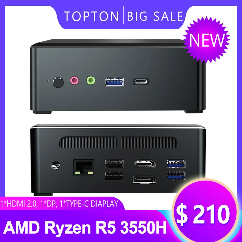| Topton Powerful Mini PC AMD Ryzen 5 3550H 4 Cores 8 Threads  3.7GHz Mini Computer Windows 10 64-Bit HDMI 2.0 DP 4K@60Hz Display |