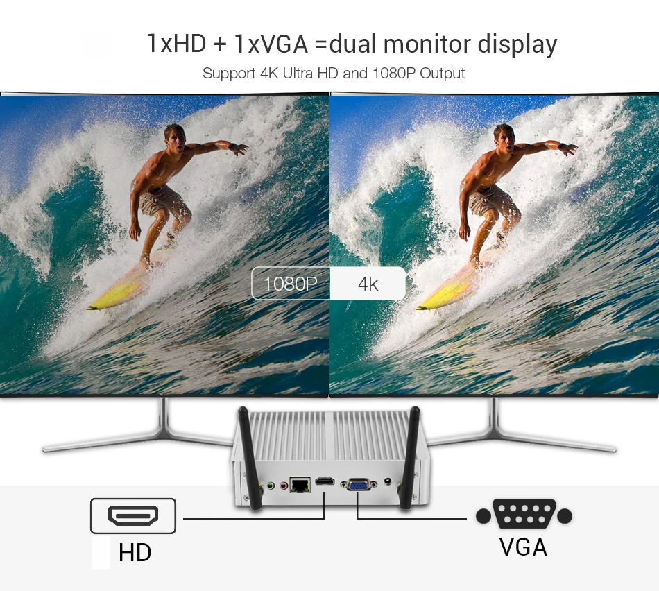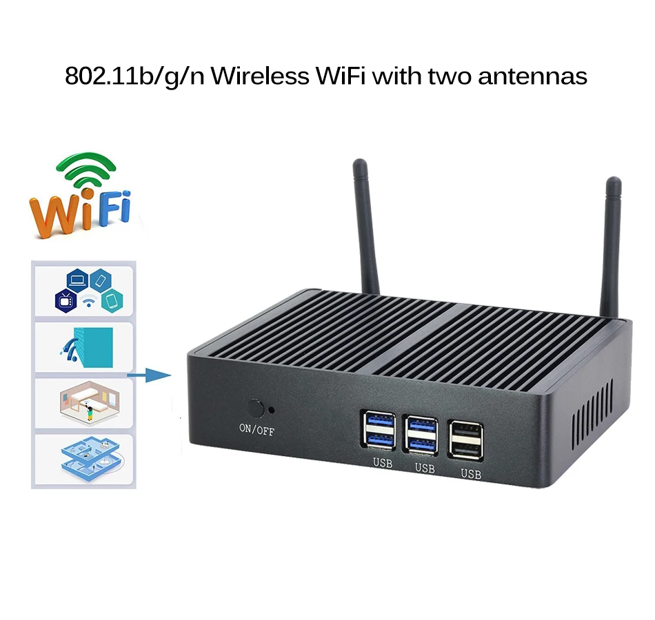 YCSD Fanless Mini PC Dual LAN Celeron N2810 J1900 Mini Computer 2*Gigabit LAN Windows 7 10 WIFI USB Desktop Micro Htpc Nuc Ps