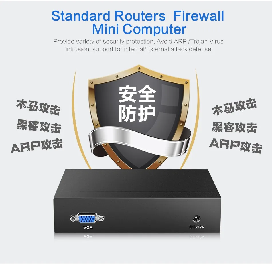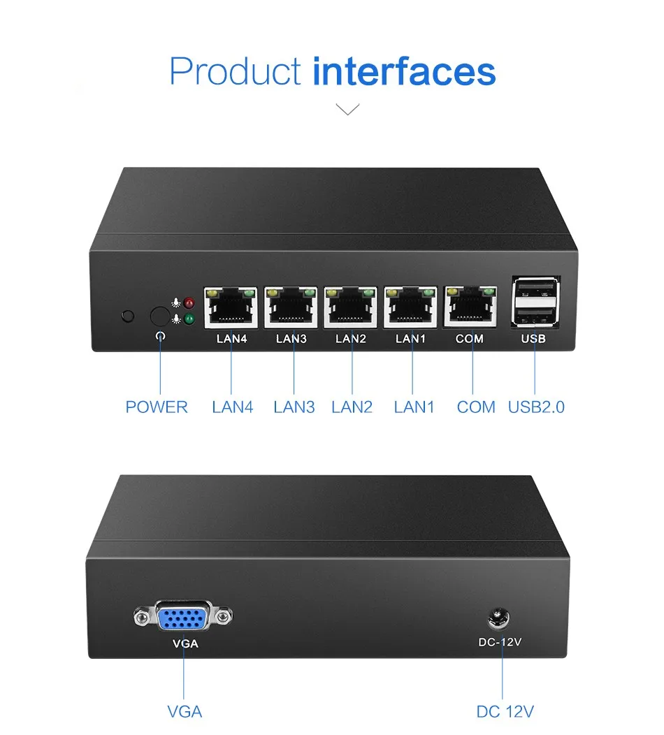 | Mini PC Intel Celeron N2830 Firewall Router 4 LAN Intel i211AT Gigabit Ethernet RJ45 VGA 2xUSB Support Pfsense Linux |