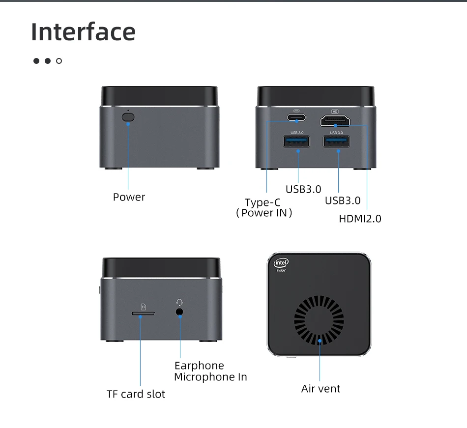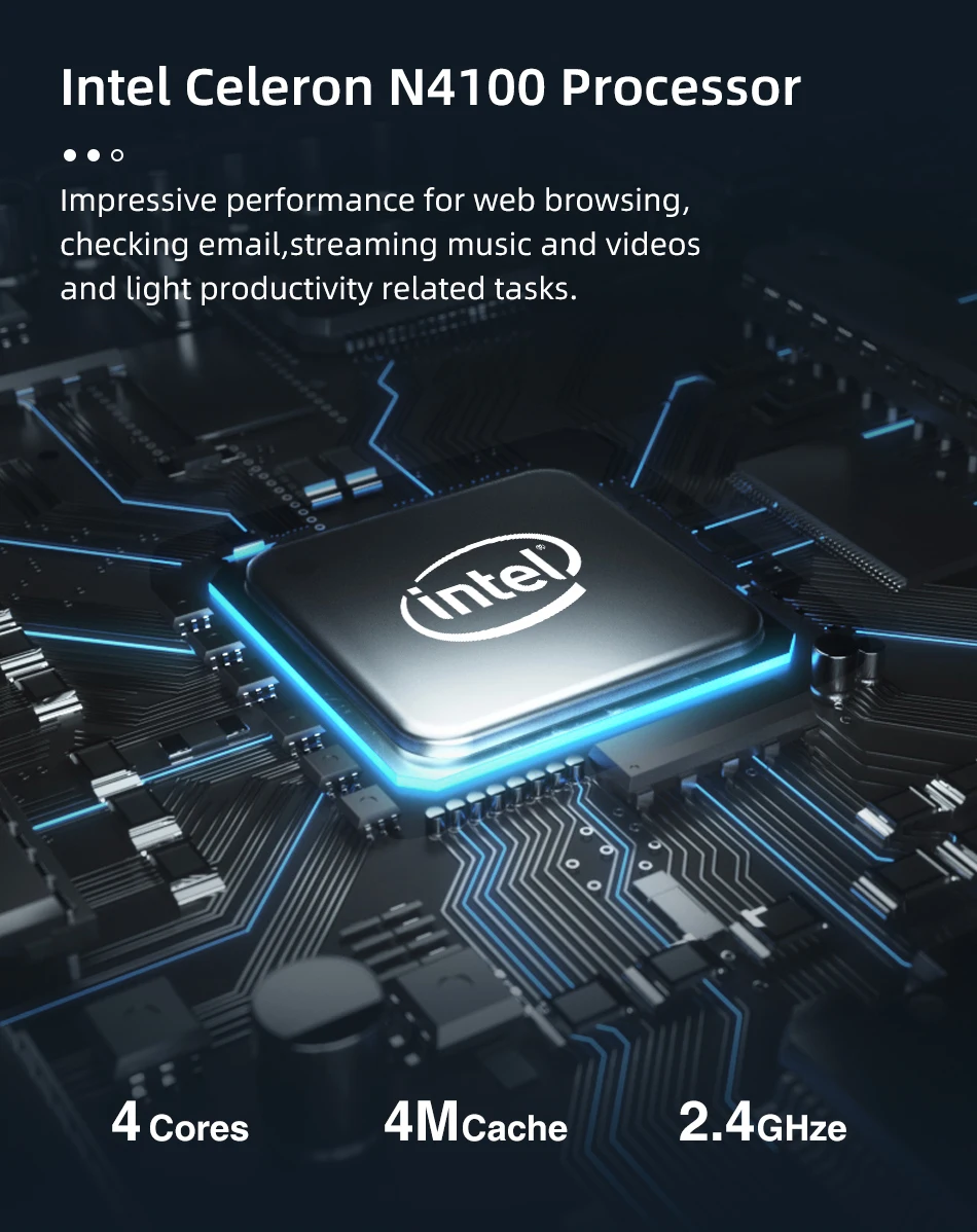 | Mini PC Intel Celeron N4100 Quad-Core 8GB LPDDR4 128GB 2.4G/5.0G WiFi Bluetooth 4.2 HDMI2.0 4K 60Hz USB-C Windows10 Computer |