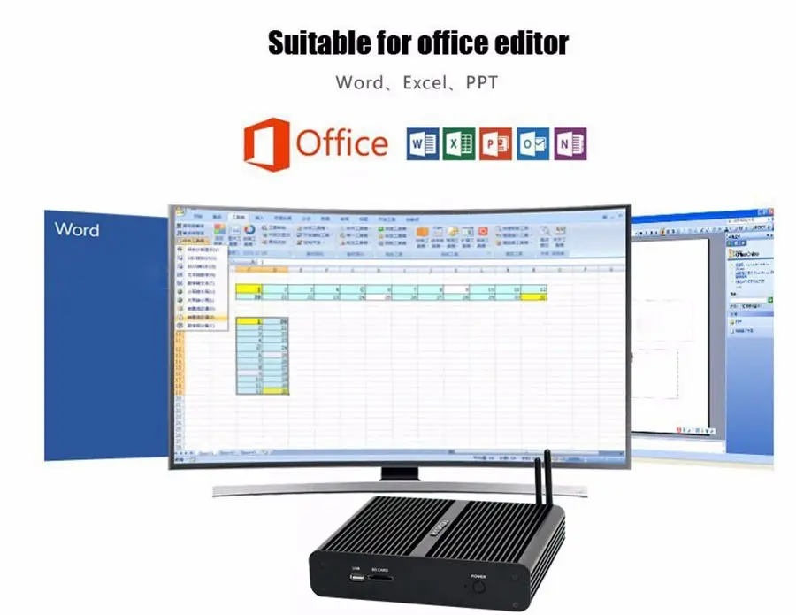 What can this mini computer do?	1. Office work: Office, skype, yahoo, outlook and all other office requirement support and runs perfect;