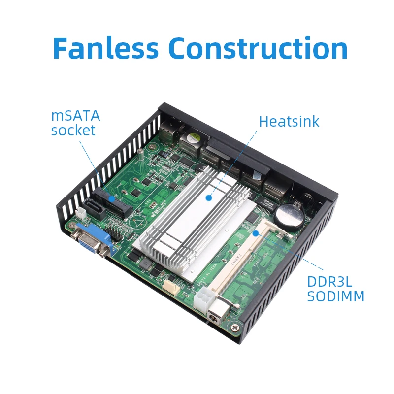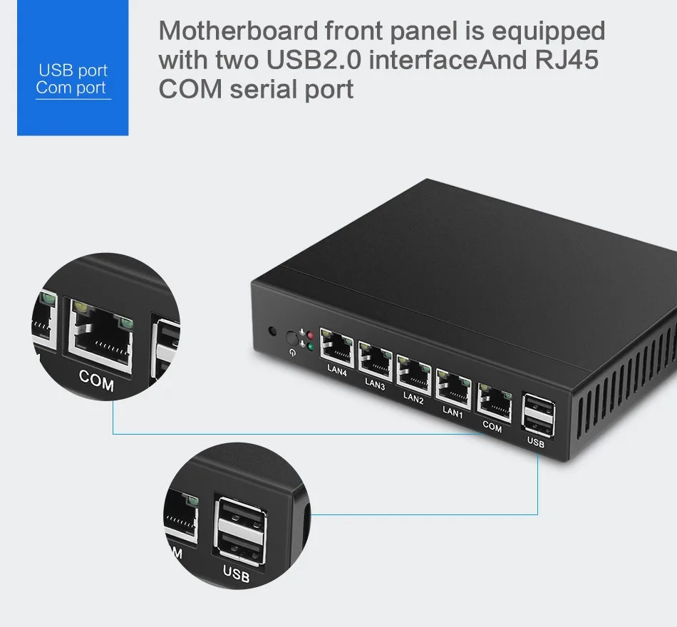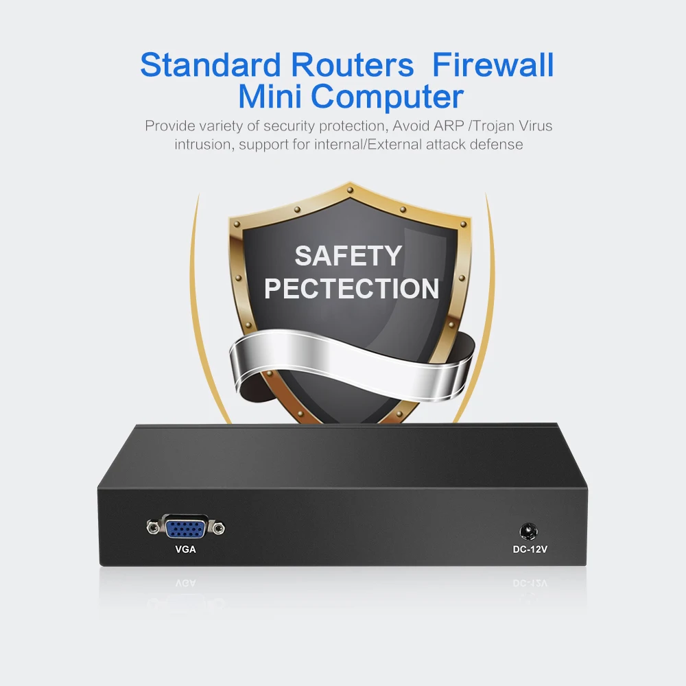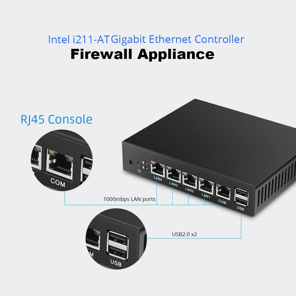 ① Support one DDR3L 1.35V memory, max to 8GB & one mSATA SSD hard drive;② Intel i211AT 1000Mbps LAN③ Fanless construction, offering you zero noise experience;④ Connectivity with 1x COM RJ45 console, 4x LAN, 2x USB 2.0, 1x VGA⑤ Enterprise firewall appliance, support virtualization, wake-up on LAN, automatically power on after power restore.⑥ Can be configured as a firewall, LAN or WAN router, VPN appliance, DHCP Server, DNS Server.Common Use Case:SMB to Medium Sized NetworksSmall to Medium Sized Branch OfficeManaged Service Providers (MSP) / Managed Security Service Provider (MSSP) On-Premises ApplianceHome or Commercial High-Speed Gigabit ConnectionsMultiple VPN ConnectionsProcessors Performance